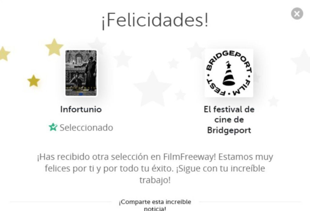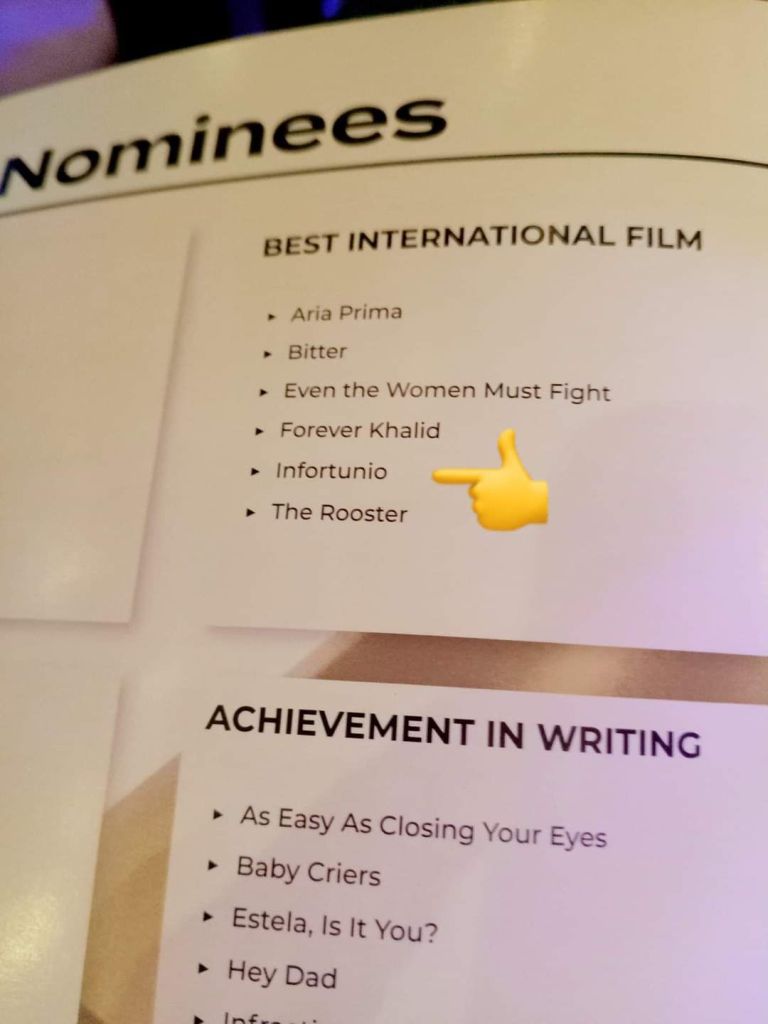 En el festival de Bridgeport, Infortunio, ha sido nominado a mejor Film Internacional, por lo que, de ganar la categoría, sería un paso enorme en la carrera del joven cineasta.