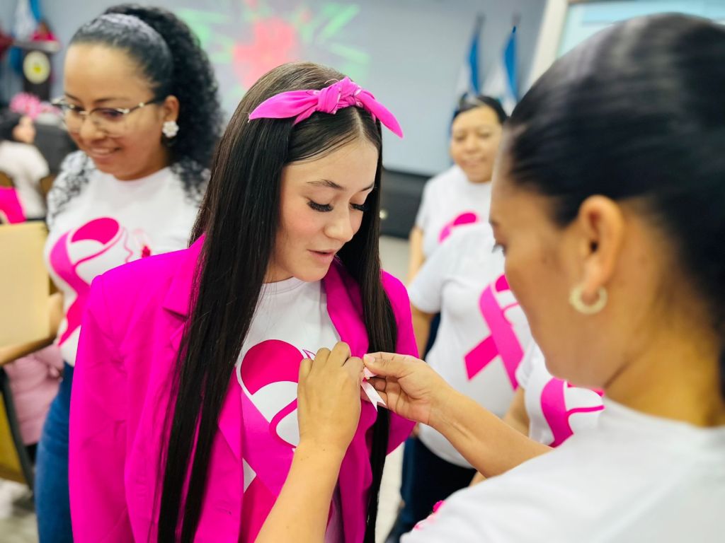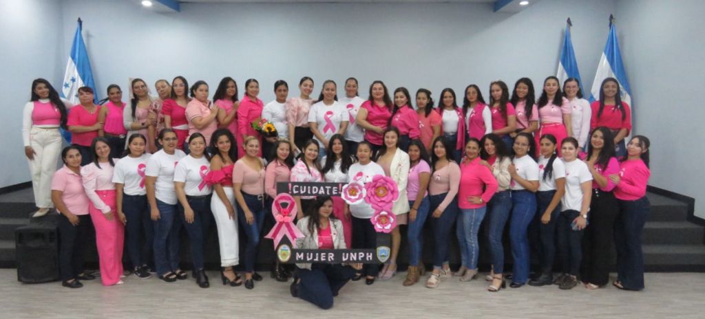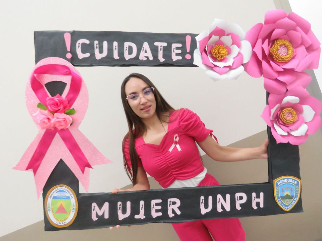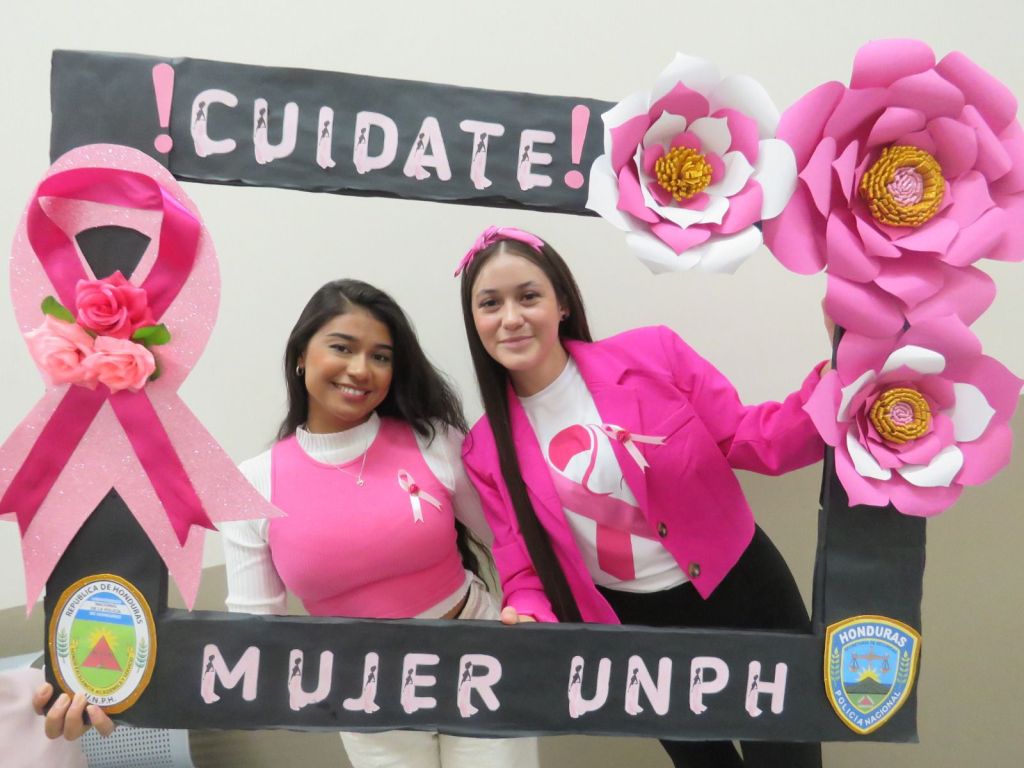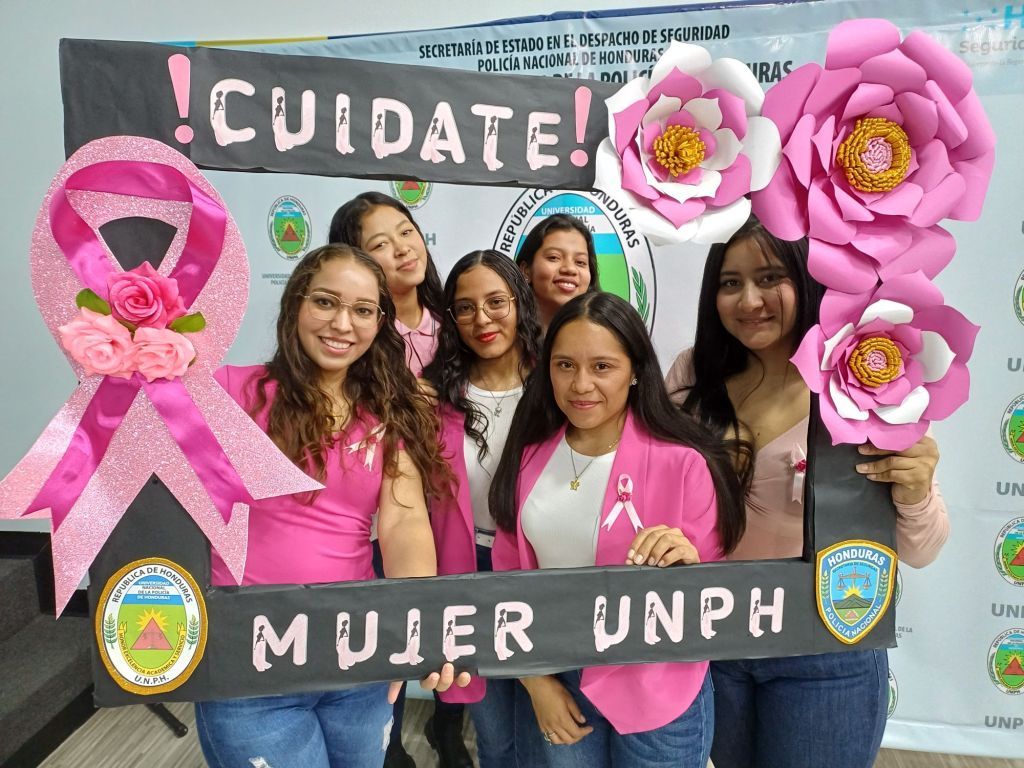 Tegucigalpa. 24 de octubre, 2024. Como un símbolo que vence a todos los obstáculos, el color rosa invadió la Universidad Nacional de la Policía de Honduras (UNPH), ya que todas las mujeres, en una sola voz dijeron ¡No al cáncer de mama!